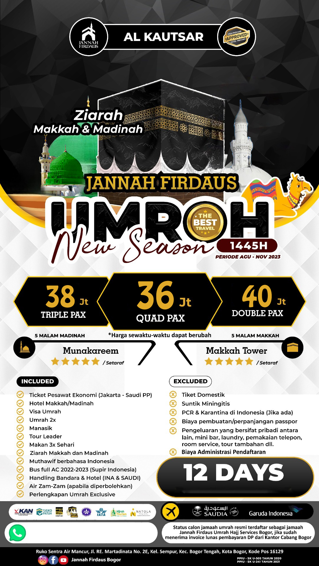 Paket AL KAUTSAR awal tahun 1445 (12 hari) HARGA MULAI DARI 36JTan