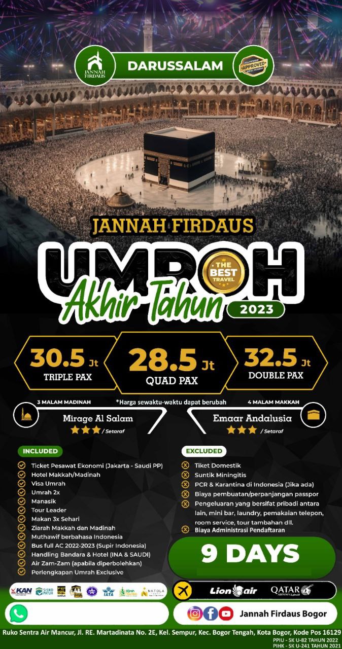Umroh Akhir Tahun Jannah Firdaus Paket Darussalam 1445 H harga mulai 28jtan